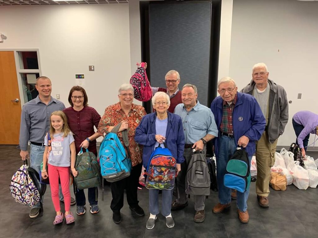 Northwest Guilford Kiwanis members doing a “food pack” for local children with Guilford Backpack Ministry.