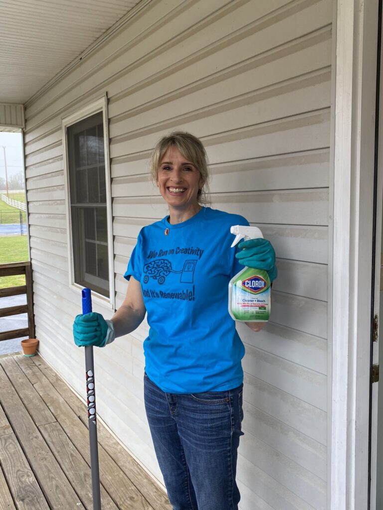 Local Key Club and High School students help with our spring cleanupCasey sporting her Odyssey of the Mind t-shirt while cleaning up the Milton House