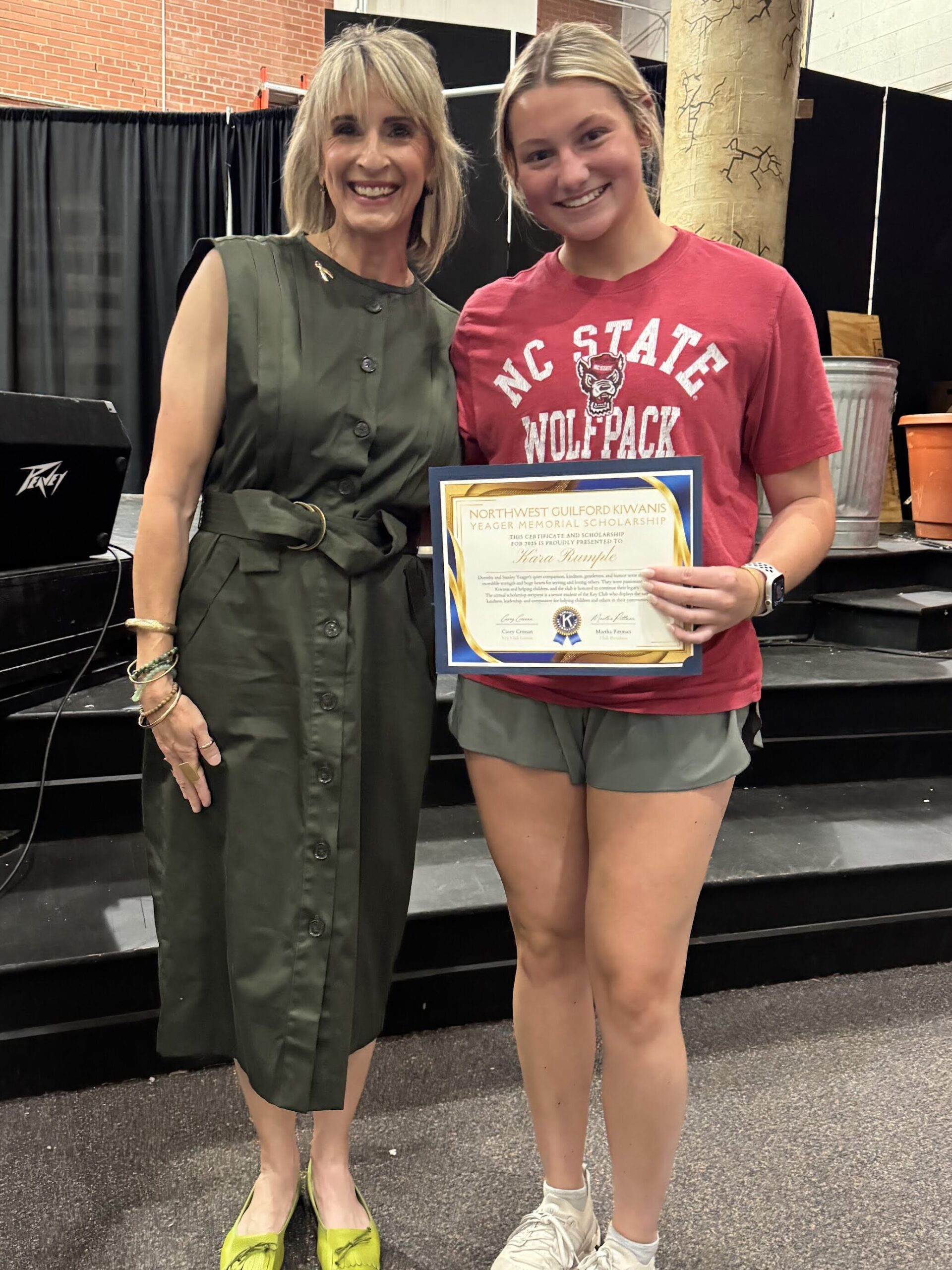 The Yeager Memorial Scholarship was established in 2020 in memory of charter member Dorothy “Dot” Yeager and was first awarded in 2021. In 2024, the scholarship grew to include a second award in recognition of Dot’s husband, Stanley “Stan” Yeager, who founded of the Northwest Guilford Kiwanis Club. The annual $1,000 scholarship is awarded to a Key Club or NWGuilford Odyssey of the Mind student who exemplifies the qualities that represent the Dot and Stan’s legacy: kindness, service, leadership, and a focus on helping and improving the lives of children in our community.